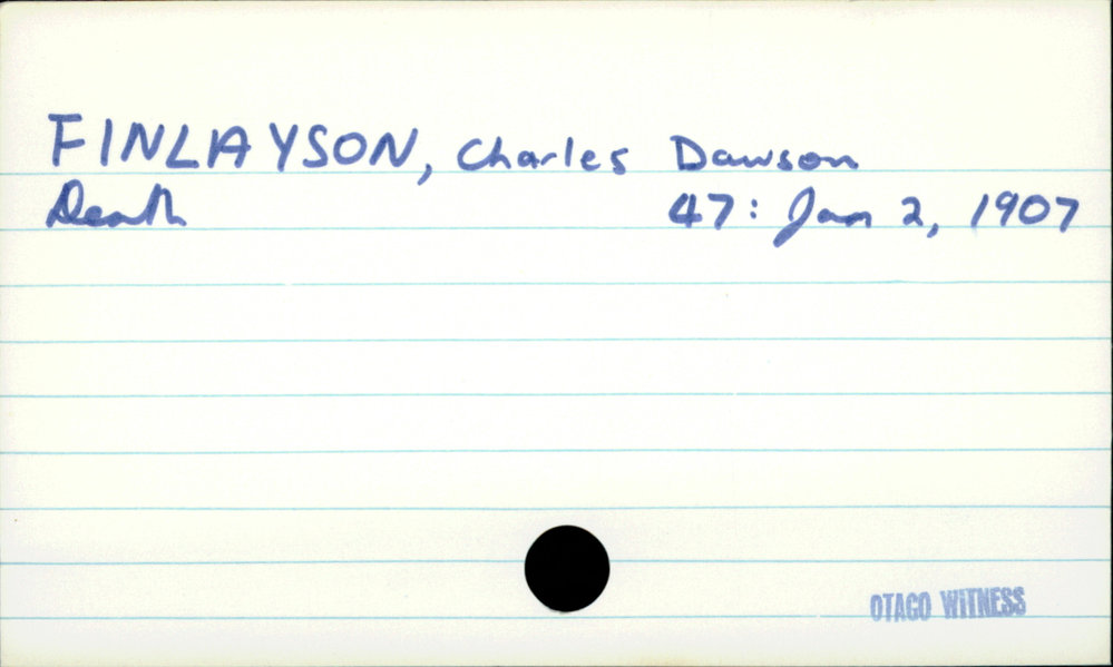 Dunedin Public Libraries (6th Dec 2019). FINLAYSON, Charles Dawson. In Website Dunedin Public Libraries. Retrieved 27th Mar 2026 10:55, from https://dunedin.recollect.co.nz/nodes/view/132344