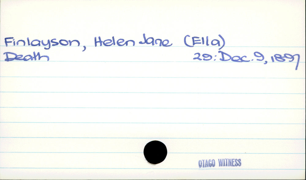 Dunedin Public Libraries (6th Dec 2019). Finlayson, Helen Jane (Ella). In Website Dunedin Public Libraries. Retrieved 27th Mar 2026 10:49, from https://dunedin.recollect.co.nz/nodes/view/132346