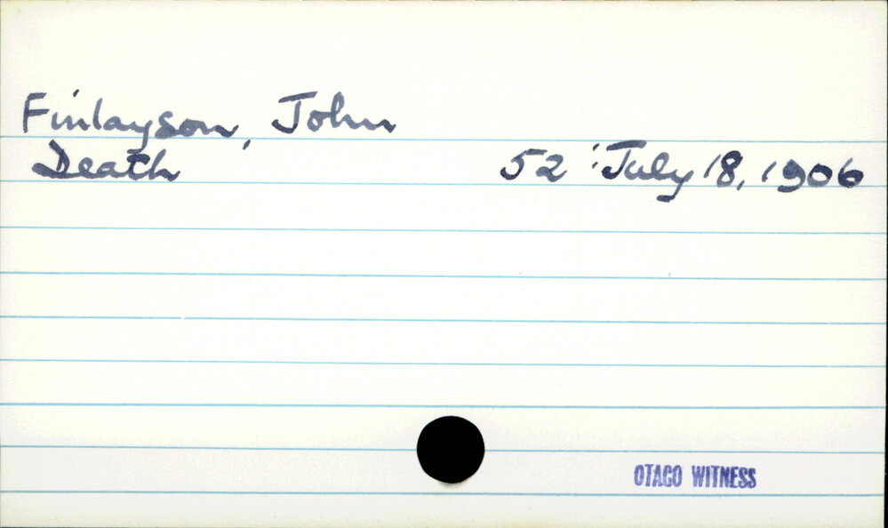 Dunedin Public Libraries (6th Dec 2019). Finlayson, John. In Website Dunedin Public Libraries. Retrieved 27th Mar 2026 10:55, from https://dunedin.recollect.co.nz/nodes/view/132352