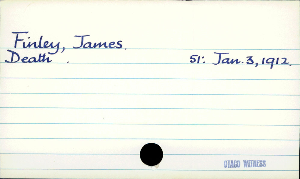 Dunedin Public Libraries (6th Dec 2019). Finley, James. In Website Dunedin Public Libraries. Retrieved 27th Mar 2026 10:48, from https://dunedin.recollect.co.nz/nodes/view/132364
