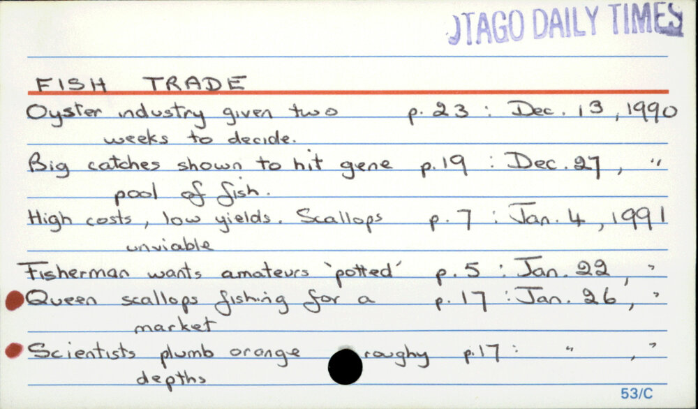Dunedin Public Libraries (22nd Dec 2019). Fish trade. In Website Dunedin Public Libraries. Retrieved 2nd Apr 2026 20:14, from https://dunedin.recollect.co.nz/nodes/view/133124