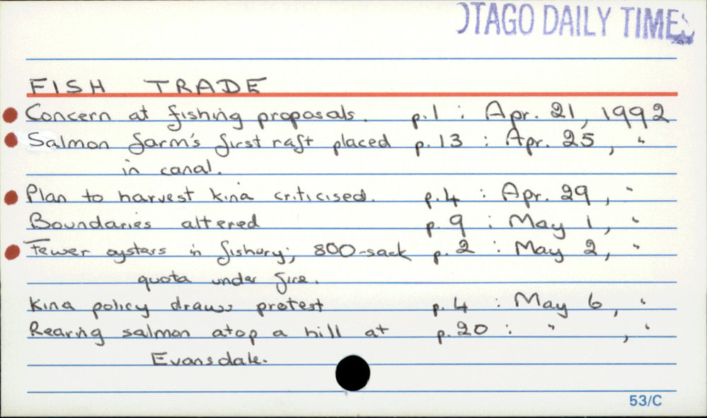 Dunedin Public Libraries (20th Dec 2019). Fish Trade. In Website Dunedin Public Libraries. Retrieved 2nd Apr 2026 20:05, from https://dunedin.recollect.co.nz/nodes/view/133130