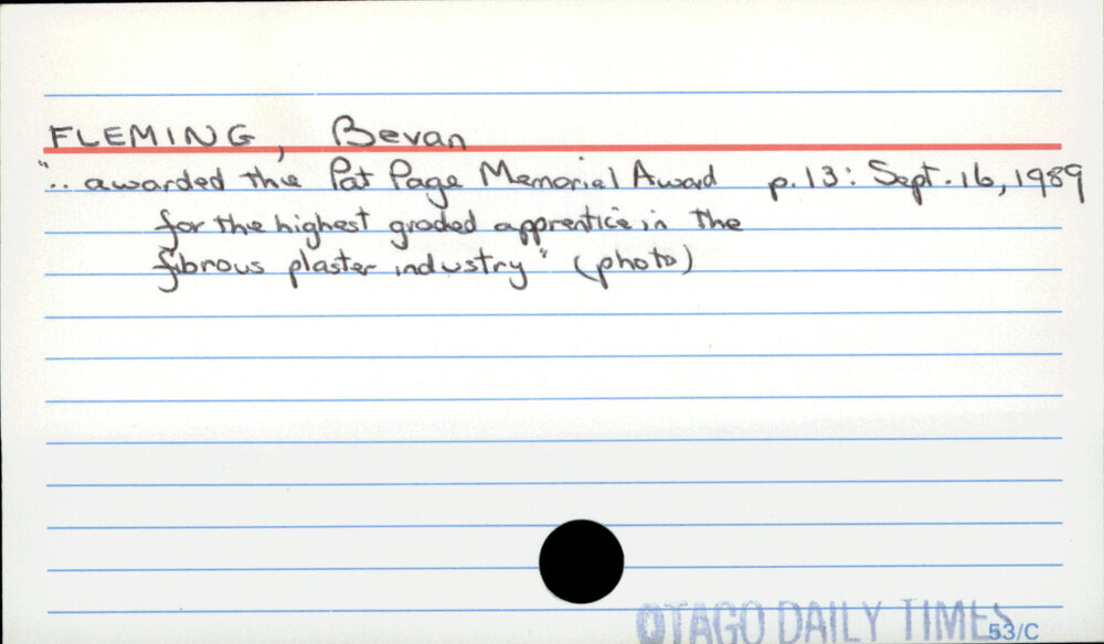 Dunedin Public Libraries (27th Dec 2019). Fleming, Bevan. In Website Dunedin Public Libraries. Retrieved 2nd Apr 2026 01:04, from https://dunedin.recollect.co.nz/nodes/view/133735