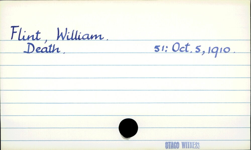 Dunedin Public Libraries (28th Dec 2019). Flint, William. In Website Dunedin Public Libraries. Retrieved 27th Mar 2026 10:49, from https://dunedin.recollect.co.nz/nodes/view/133948