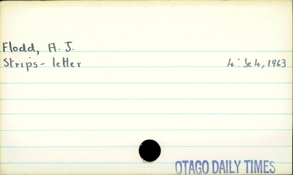 Dunedin Public Libraries (31st Dec 2019). Flodd, A. J.. In Website Dunedin Public Libraries. Retrieved 27th Mar 2026 10:56, from https://dunedin.recollect.co.nz/nodes/view/133960