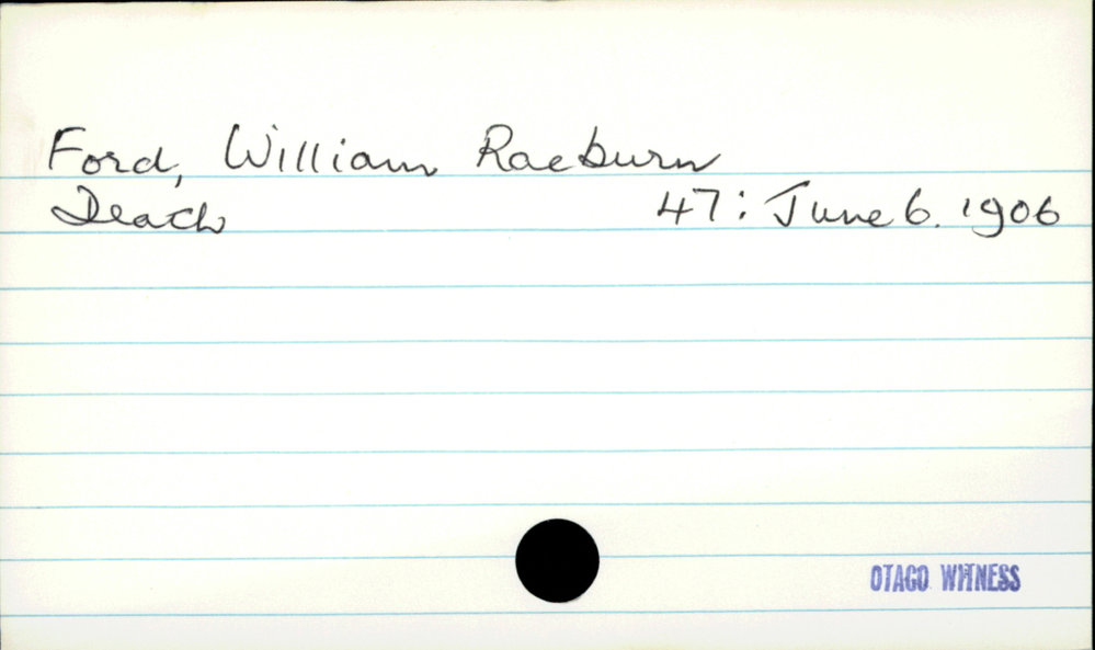 Dunedin Public Libraries (13th Jan 2020). Ford, William Raeburn. In Website Dunedin Public Libraries. Retrieved 27th Mar 2026 10:49, from https://dunedin.recollect.co.nz/nodes/view/134856