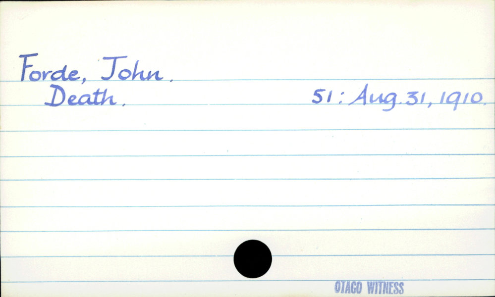Dunedin Public Libraries (13th Jan 2020). Forde, John. In Website Dunedin Public Libraries. Retrieved 27th Mar 2026 10:55, from https://dunedin.recollect.co.nz/nodes/view/134859