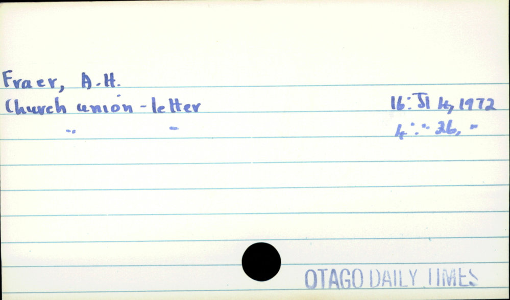 Dunedin Public Libraries (27th Jan 2020). Fraer, A.H.. In Website Dunedin Public Libraries. Retrieved 1st Apr 2026 22:40, from https://dunedin.recollect.co.nz/nodes/view/135750