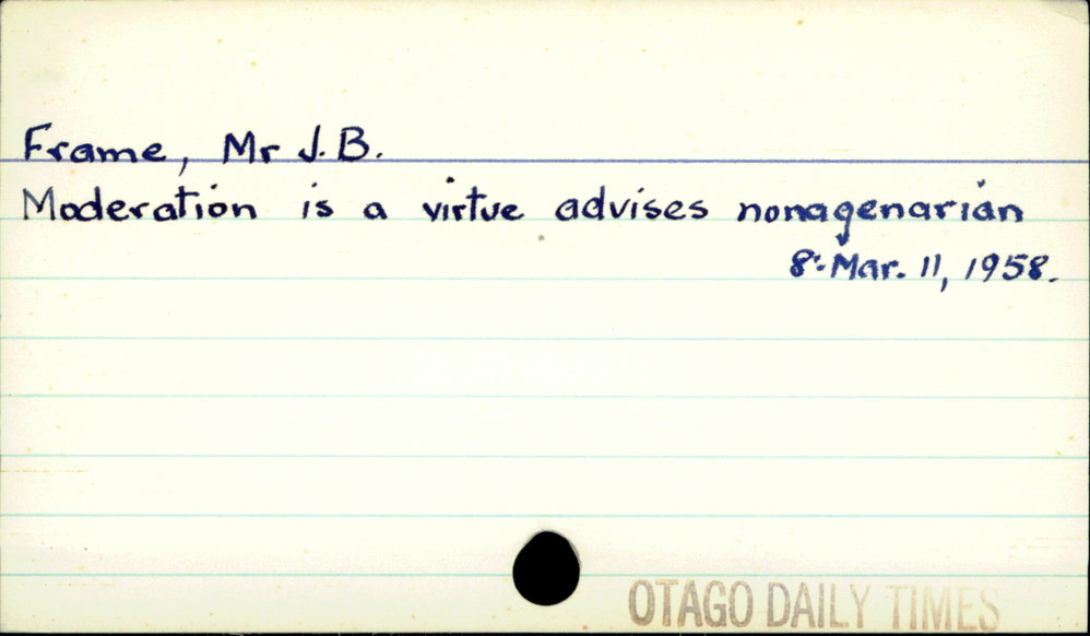 Dunedin Public Libraries (27th Jan 2020). Frame, Mr J. B.. In Website Dunedin Public Libraries. Retrieved 1st Apr 2026 22:41, from https://dunedin.recollect.co.nz/nodes/view/135766