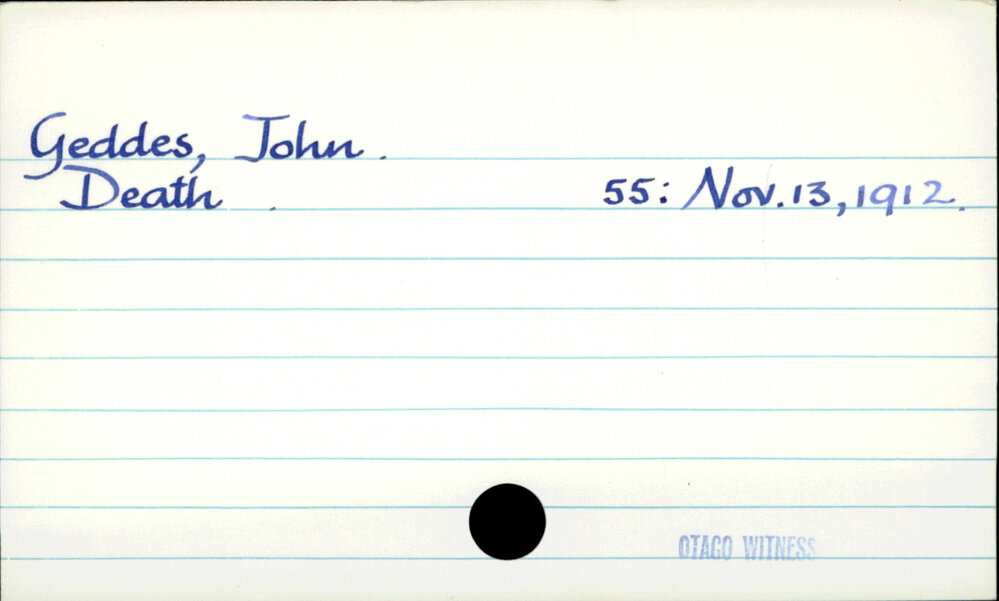 Dunedin Public Libraries (1st Mar 2020). Geddes, John. In Website Dunedin Public Libraries. Retrieved 27th Mar 2026 10:28, from https://dunedin.recollect.co.nz/nodes/view/138152