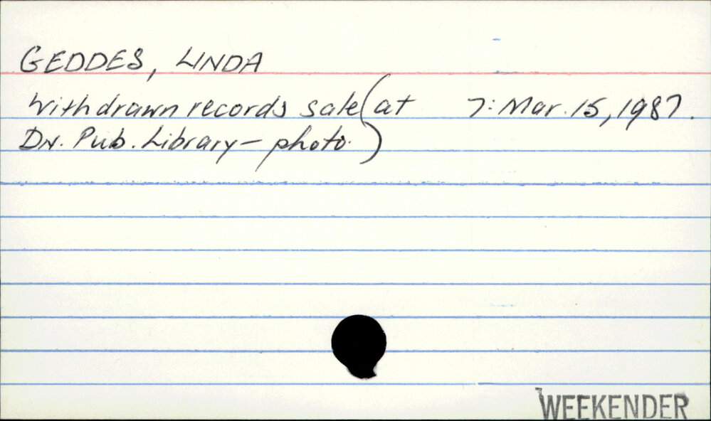 Dunedin Public Libraries (28th Feb 2020). GEDDES, LINDA. In Website Dunedin Public Libraries. Retrieved 27th Mar 2026 10:28, from https://dunedin.recollect.co.nz/nodes/view/138155