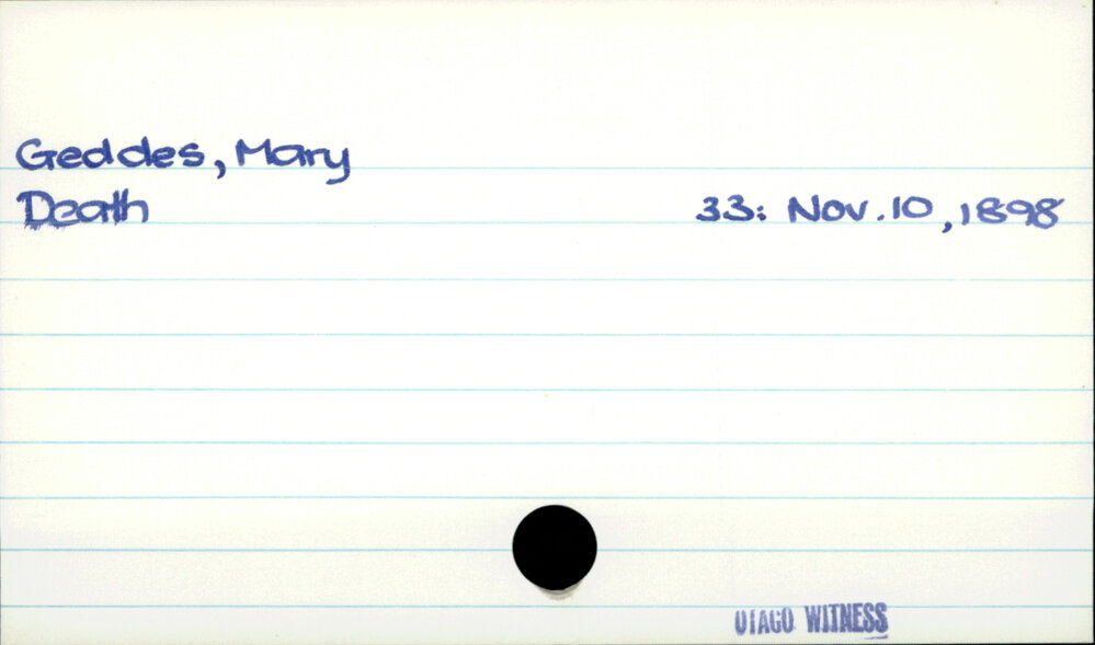 Dunedin Public Libraries (28th Feb 2020). Geddes, Mary. In Website Dunedin Public Libraries. Retrieved 27th Mar 2026 10:28, from https://dunedin.recollect.co.nz/nodes/view/138159