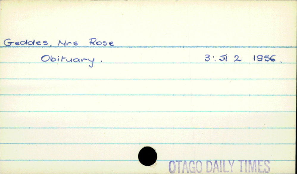 Dunedin Public Libraries (28th Feb 2020). Geddes, Mrs Rose. In Website Dunedin Public Libraries. Retrieved 27th Mar 2026 10:37, from https://dunedin.recollect.co.nz/nodes/view/138169