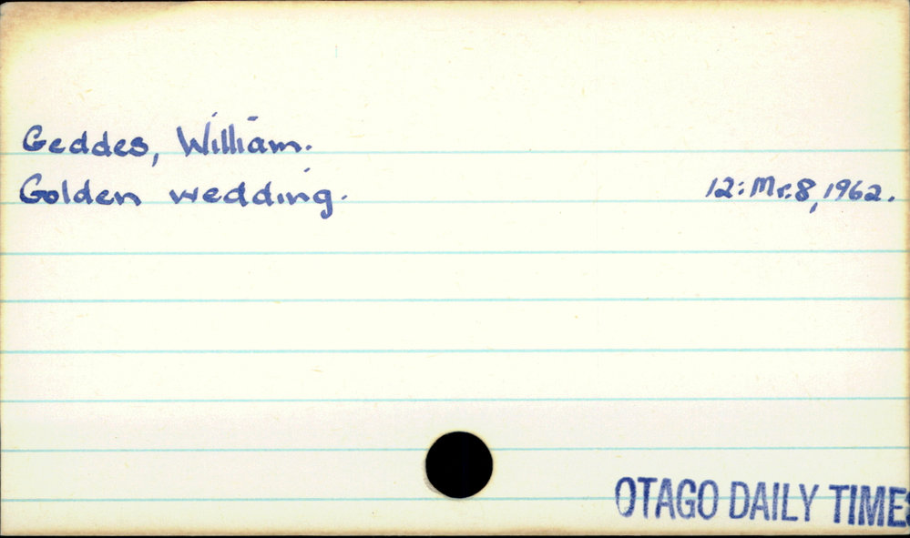 Dunedin Public Libraries (28th Feb 2020). Geddes, William. In Website Dunedin Public Libraries. Retrieved 27th Mar 2026 10:35, from https://dunedin.recollect.co.nz/nodes/view/138177