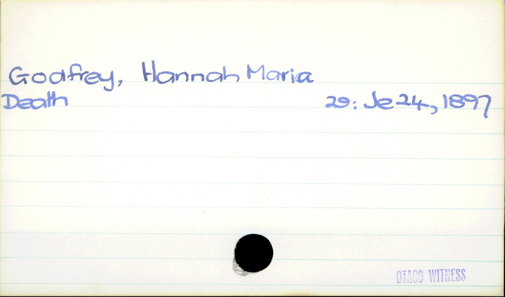 Dunedin Public Libraries (28th Mar 2020). Godfrey, Hannah Maria. In Website Dunedin Public Libraries. Retrieved 9th Apr 2026 18:04, from https://dunedin.recollect.co.nz/nodes/view/139761