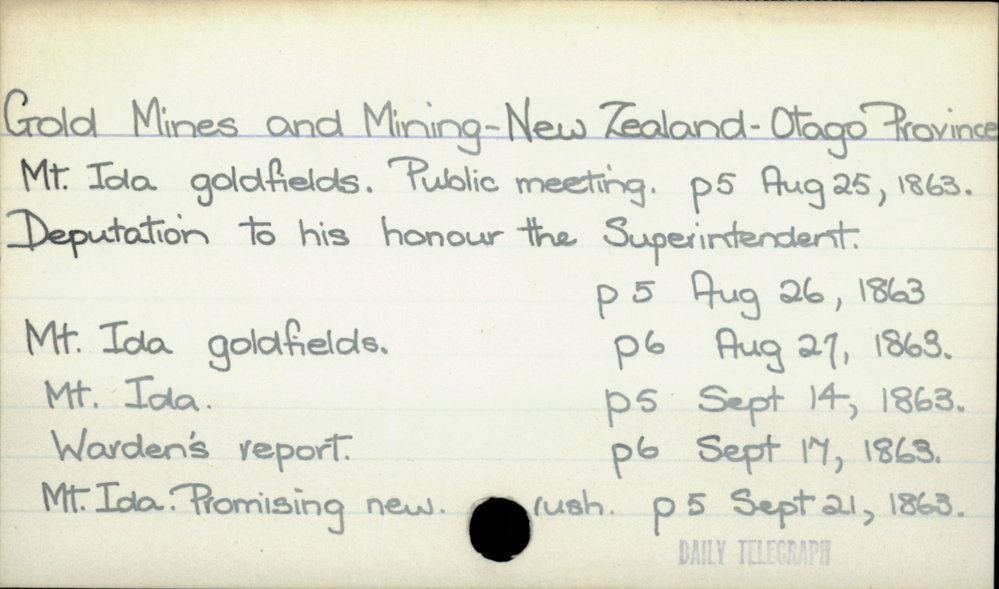 Dunedin Public Libraries (3rd Apr 2020). Gold Mines and Mining - New Zealand - Otago Province. In Website Dunedin Public Libraries. Retrieved 27th Mar 2026 14:16, from https://dunedin.recollect.co.nz/nodes/view/140609