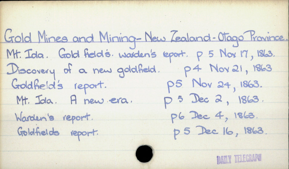 Dunedin Public Libraries (5th Apr 2020). Gold Mines and Mining - New Zealand - Otago Province. In Website Dunedin Public Libraries. Retrieved 27th Mar 2026 14:16, from https://dunedin.recollect.co.nz/nodes/view/140614