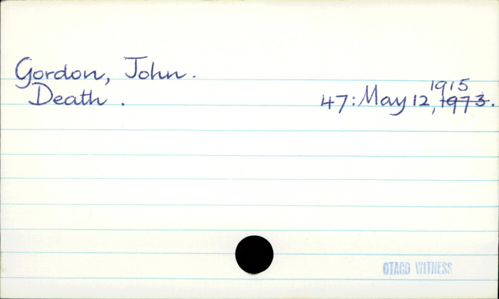 Dunedin Public Libraries (7th Apr 2020). Gordon, John. In Website Dunedin Public Libraries. Retrieved 27th Mar 2026 14:12, from https://dunedin.recollect.co.nz/nodes/view/141403
