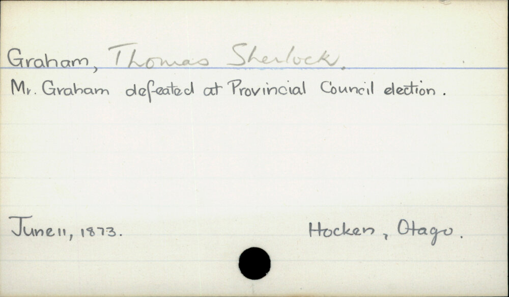 Dunedin Public Libraries (14th Apr 2020). Graham, Thomas Sherlock. In Website Dunedin Public Libraries. Retrieved 27th Mar 2026 15:07, from https://dunedin.recollect.co.nz/nodes/view/142231