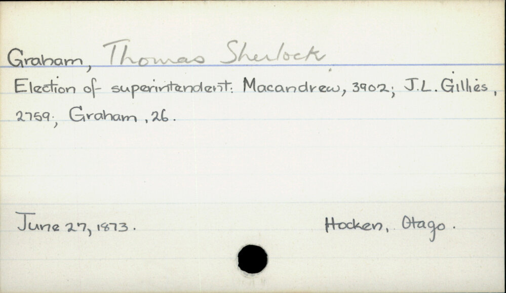 Dunedin Public Libraries (14th Apr 2020). Graham, Thomas Sherlock. In Website Dunedin Public Libraries. Retrieved 27th Mar 2026 15:07, from https://dunedin.recollect.co.nz/nodes/view/142232
