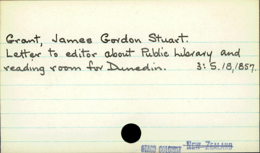 Dunedin Public Libraries (14th Apr 2020). Grant, James Gordon Stuart. In Website Dunedin Public Libraries. Retrieved 27th Mar 2026 16:07, from https://dunedin.recollect.co.nz/nodes/view/142451