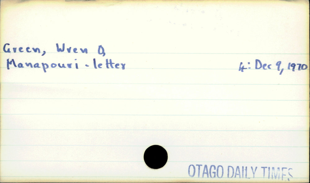 Dunedin Public Libraries (14th Apr 2020). Green, Wren O. In Website Dunedin Public Libraries. Retrieved 27th Mar 2026 18:11, from https://dunedin.recollect.co.nz/nodes/view/143066