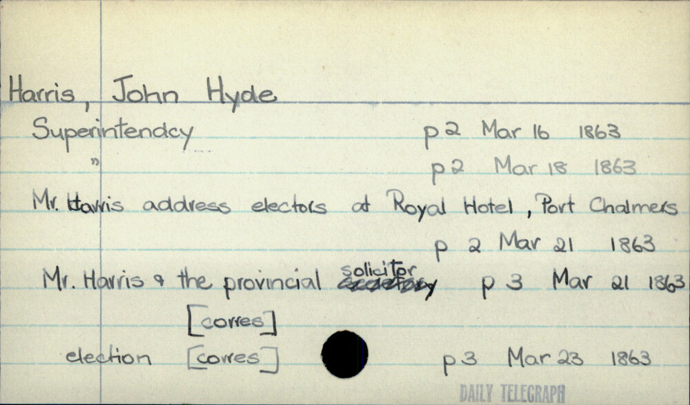 Dunedin Public Libraries (24th Apr 2020). Harris, John Hyde. In Website Dunedin Public Libraries. Retrieved 27th Mar 2026 18:11, from https://dunedin.recollect.co.nz/nodes/view/146379
