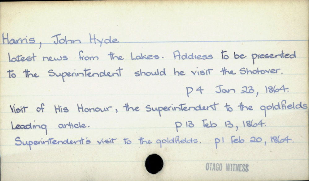 Dunedin Public Libraries (24th Apr 2020). Harris, John Hyde. In Website Dunedin Public Libraries. Retrieved 27th Mar 2026 18:12, from https://dunedin.recollect.co.nz/nodes/view/146386