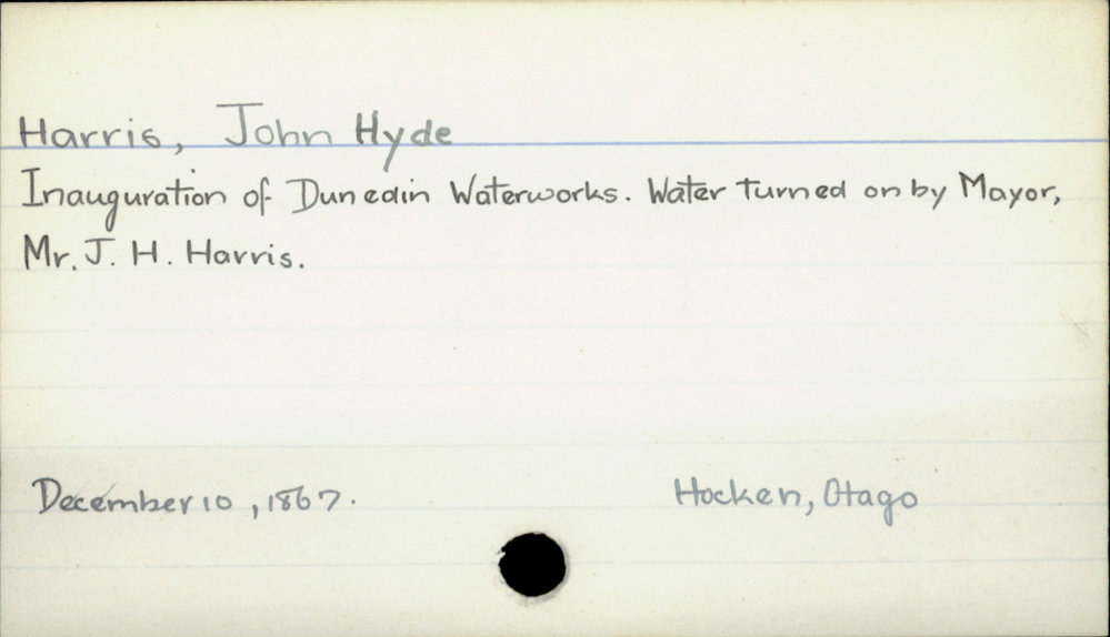 Dunedin Public Libraries (1st May 2020). Harris, John Hyde. In Website Dunedin Public Libraries. Retrieved 27th Mar 2026 18:12, from https://dunedin.recollect.co.nz/nodes/view/146394