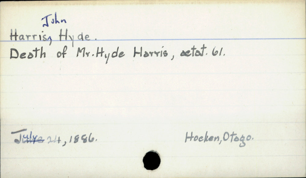 Dunedin Public Libraries (10th May 2020). Harris, John Hyde. In Website Dunedin Public Libraries. Retrieved 27th Mar 2026 18:12, from https://dunedin.recollect.co.nz/nodes/view/146396