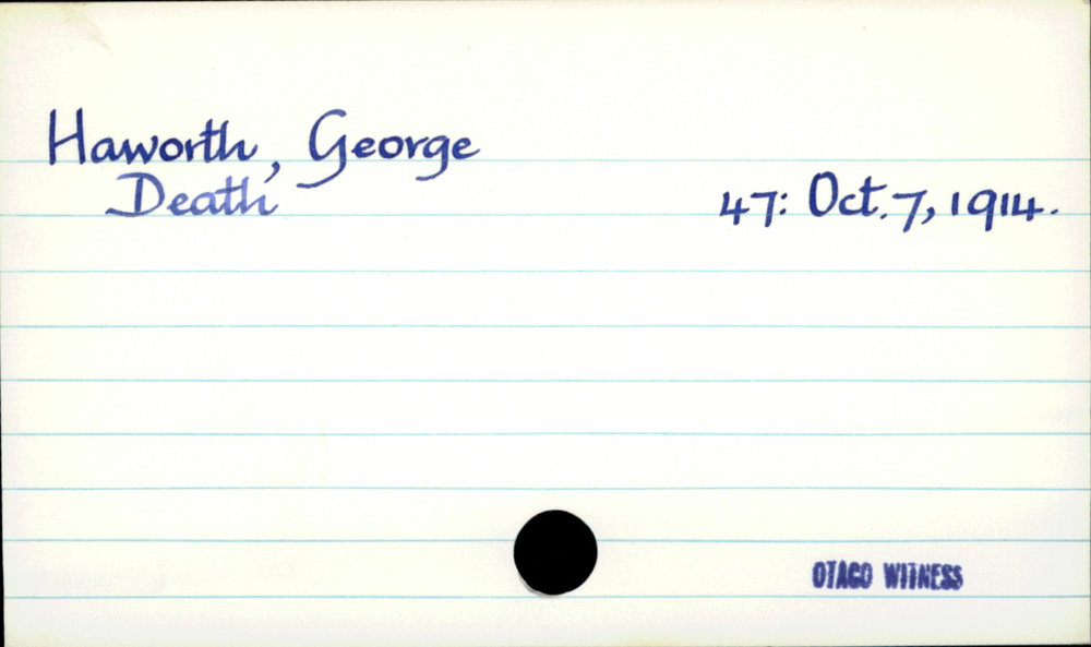 Dunedin Public Libraries (28th Apr 2020). Haworth, George. In Website Dunedin Public Libraries. Retrieved 27th Mar 2026 10:53, from https://dunedin.recollect.co.nz/nodes/view/147247