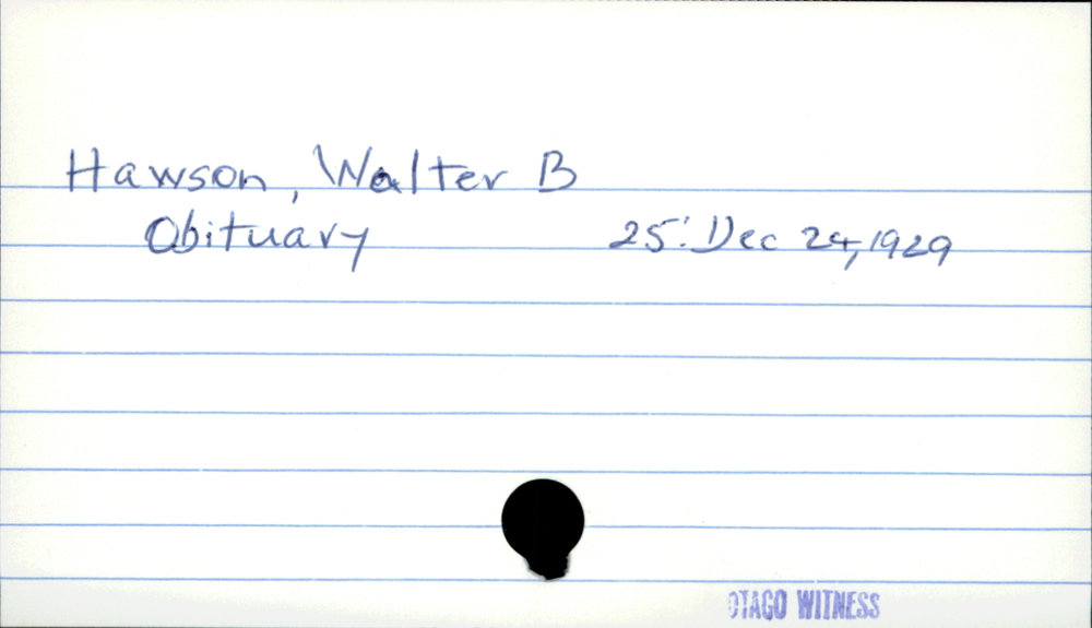 Dunedin Public Libraries (28th Apr 2020). Hawson, Walter B.. In Website Dunedin Public Libraries. Retrieved 27th Mar 2026 10:53, from https://dunedin.recollect.co.nz/nodes/view/147254