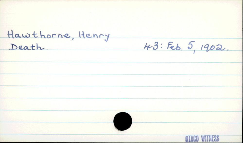 Dunedin Public Libraries (29th Apr 2020). Hawthorne, Henry. In Website Dunedin Public Libraries. Retrieved 27th Mar 2026 10:48, from https://dunedin.recollect.co.nz/nodes/view/147262