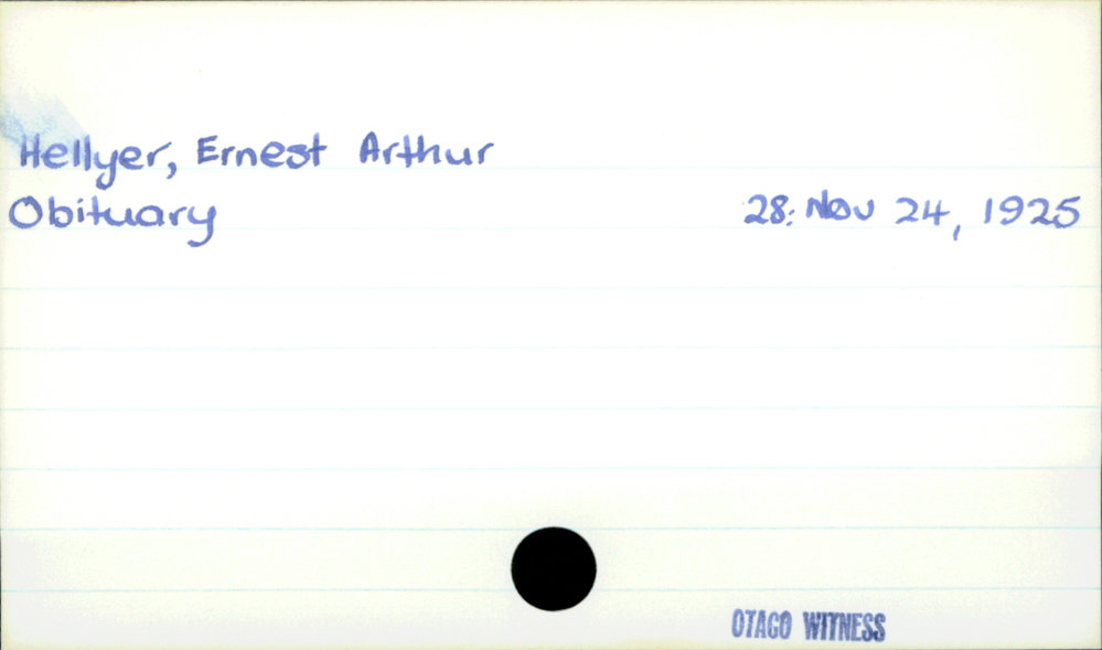 Dunedin Public Libraries (2nd May 2020). Hellyer, Ernest Arthur. In Website Dunedin Public Libraries. Retrieved 27th Mar 2026 10:28, from https://dunedin.recollect.co.nz/nodes/view/148045