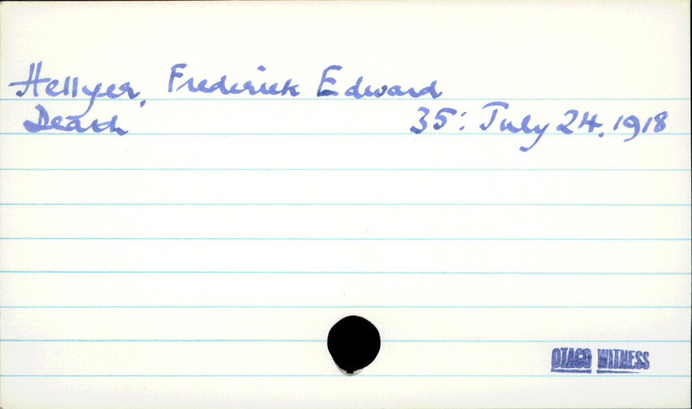 Dunedin Public Libraries (2nd May 2020). Hellyer, Frederick Edward. In Website Dunedin Public Libraries. Retrieved 27th Mar 2026 10:28, from https://dunedin.recollect.co.nz/nodes/view/148046