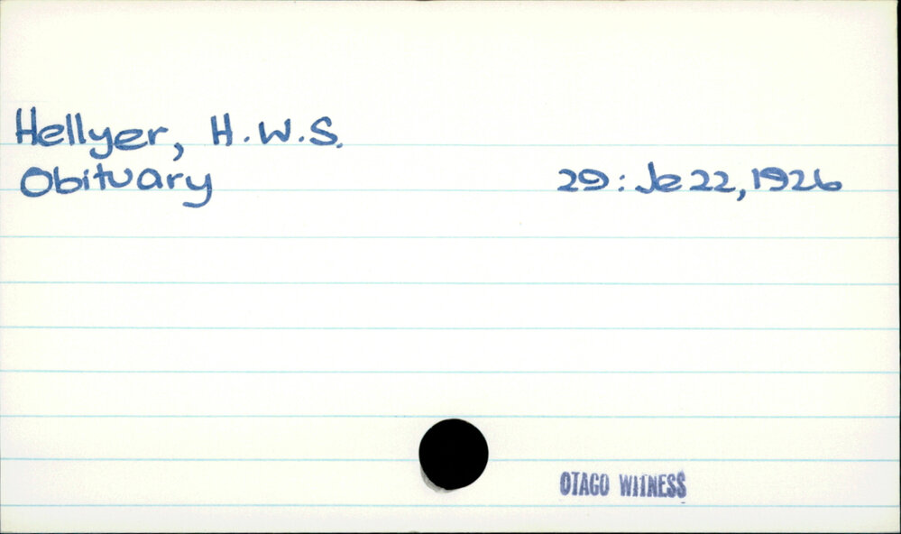 Dunedin Public Libraries (2nd May 2020). Hellyer, H.W.S.. In Website Dunedin Public Libraries. Retrieved 27th Mar 2026 10:28, from https://dunedin.recollect.co.nz/nodes/view/148050