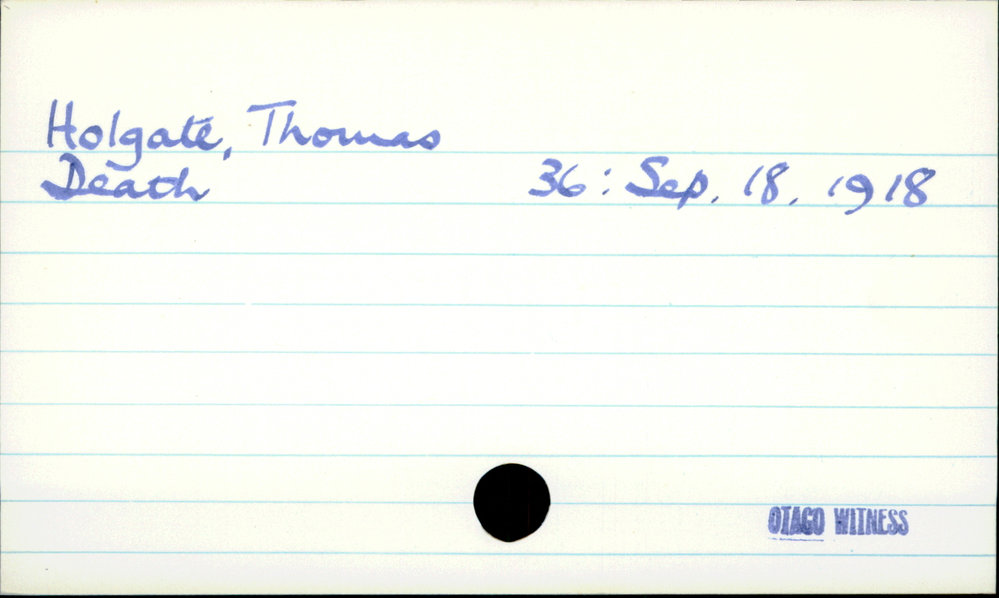 Dunedin Public Libraries (16th May 2020). Holgate, Thomas. In Website Dunedin Public Libraries. Retrieved 27th Mar 2026 10:48, from https://dunedin.recollect.co.nz/nodes/view/150426