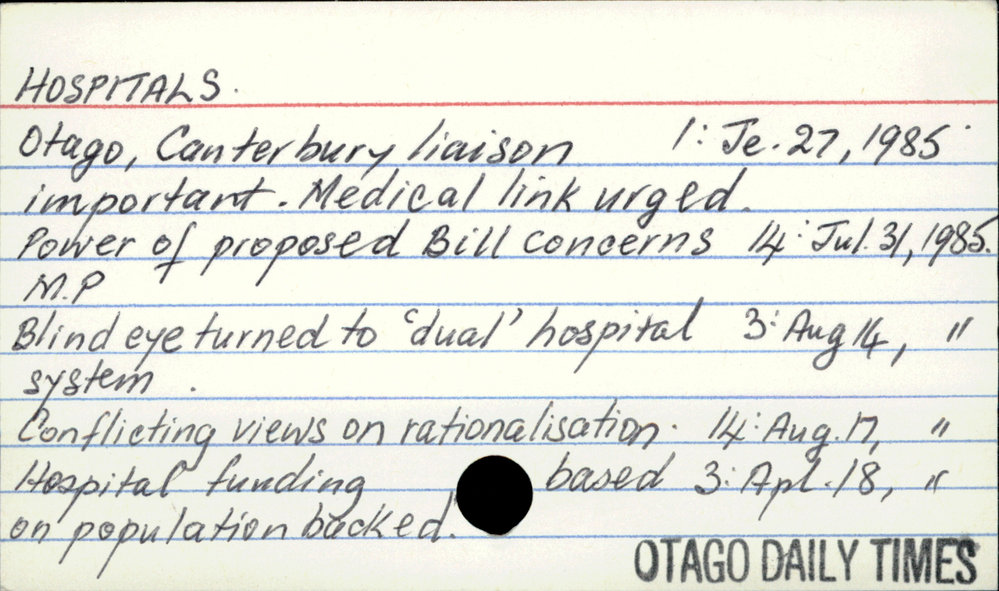 Dunedin Public Libraries (16th Jun 2020). Hospitals - New Zealand. In Website Dunedin Public Libraries. Retrieved 27th Mar 2026 10:49, from https://dunedin.recollect.co.nz/nodes/view/151837