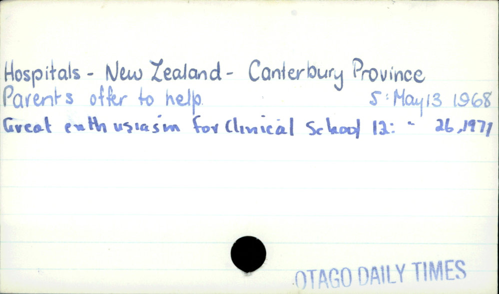 Dunedin Public Libraries (26th May 2020). Hospitals - New Zealand - Canterbury Province. In Website Dunedin Public Libraries. Retrieved 27th Mar 2026 10:53, from https://dunedin.recollect.co.nz/nodes/view/151855