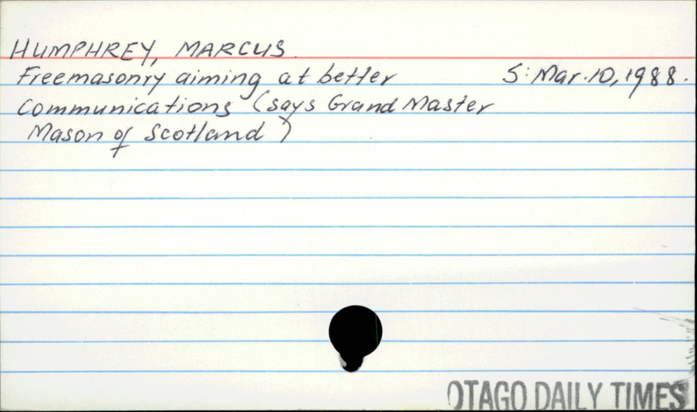 Dunedin Public Libraries (10th Jun 2020). Humphrey, Marcus. In Website Dunedin Public Libraries. Retrieved 27th Mar 2026 07:15, from https://dunedin.recollect.co.nz/nodes/view/153484