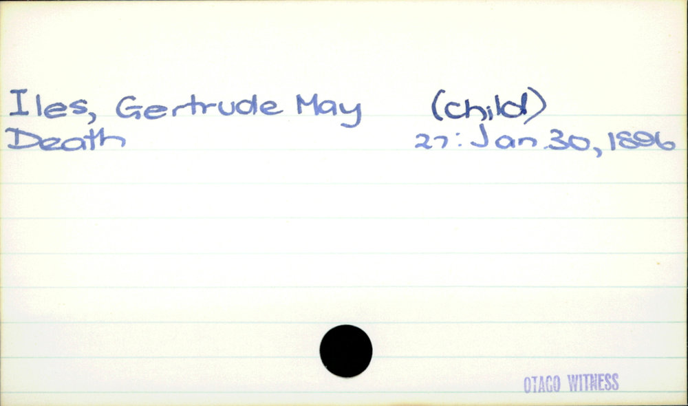 Dunedin Public Libraries (16th Jun 2020). Iles, Gertrude May (child). In Website Dunedin Public Libraries. Retrieved 27th Mar 2026 07:10, from https://dunedin.recollect.co.nz/nodes/view/154413