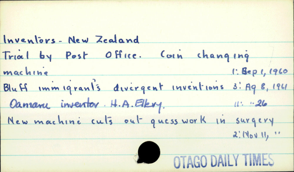 Dunedin Public Libraries (30th Jun 2020). Inventors - New Zealand. In Website Dunedin Public Libraries. Retrieved 27th Mar 2026 07:10, from https://dunedin.recollect.co.nz/nodes/view/155375