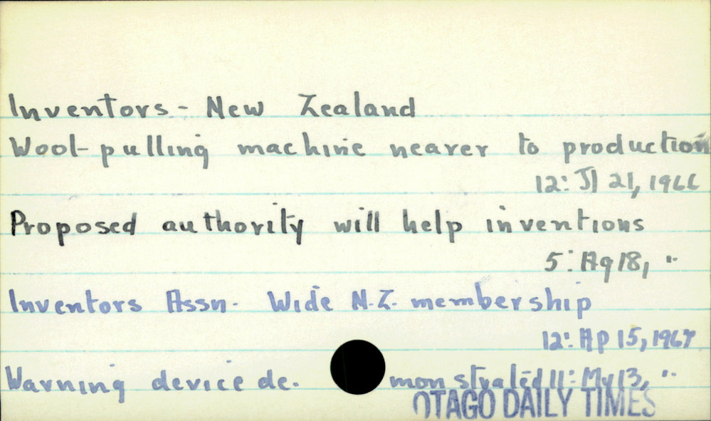 Dunedin Public Libraries (6th Jul 2020). Inventors - New Zealand. In Website Dunedin Public Libraries. Retrieved 27th Mar 2026 07:03, from https://dunedin.recollect.co.nz/nodes/view/155379
