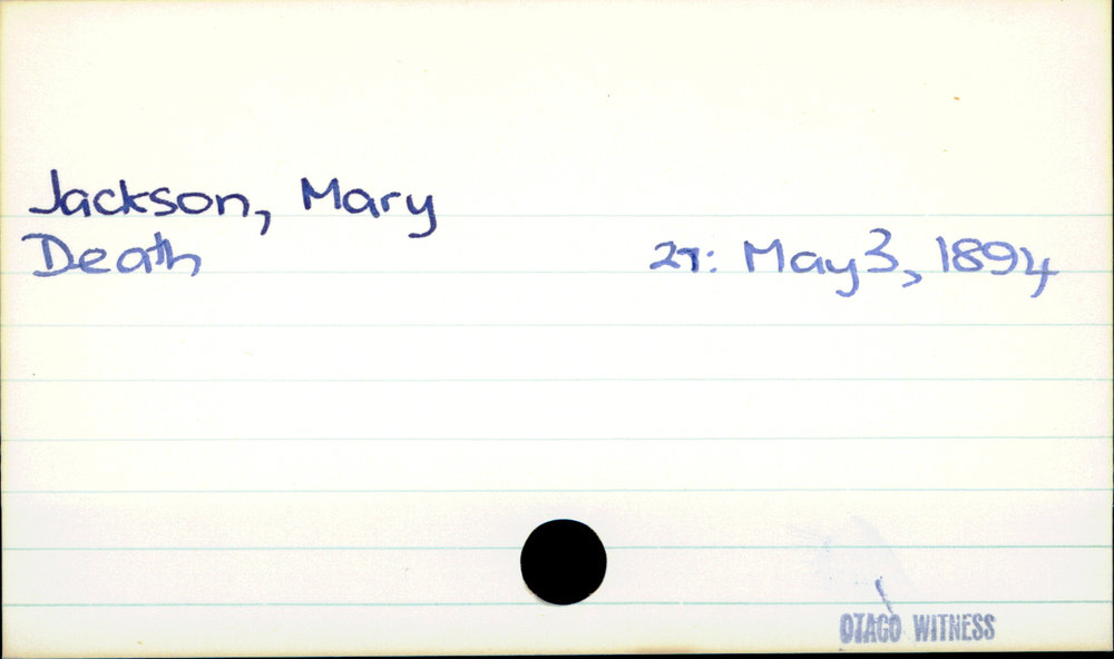 Dunedin Public Libraries (9th Jul 2020). Jackson, Mary. In Website Dunedin Public Libraries. Retrieved 27th Mar 2026 07:14, from https://dunedin.recollect.co.nz/nodes/view/156310
