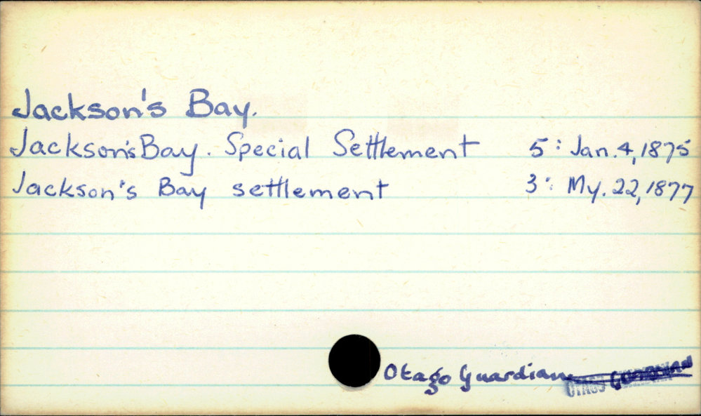 Dunedin Public Libraries (10th Jul 2020). Jackson's Bay. In Website Dunedin Public Libraries. Retrieved 2nd Apr 2026 18:19, from https://dunedin.recollect.co.nz/nodes/view/156384
