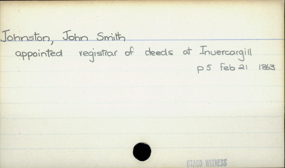 Dunedin Public Libraries (24th Jul 2020). Johnston, John Smith. In Website Dunedin Public Libraries. Retrieved 27th Mar 2026 07:15, from https://dunedin.recollect.co.nz/nodes/view/157796