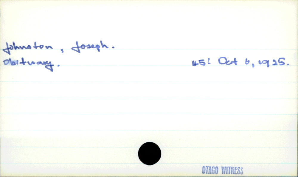 Dunedin Public Libraries (21st Jul 2020). Johnston, Joseph. In Website Dunedin Public Libraries. Retrieved 27th Mar 2026 07:14, from https://dunedin.recollect.co.nz/nodes/view/157801