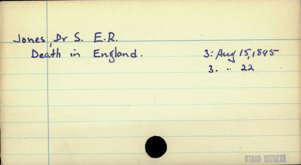 Dunedin Public Libraries (25th Jul 2020). Jones, Dr S. E. R.. In Website Dunedin Public Libraries. Retrieved 27th Mar 2026 07:14, from https://dunedin.recollect.co.nz/nodes/view/158493