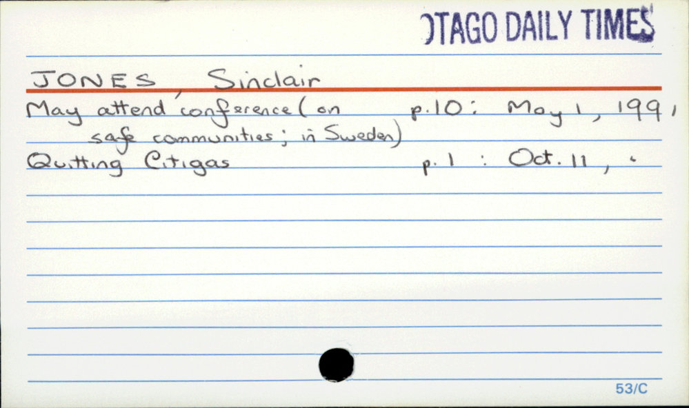 Dunedin Public Libraries (25th Jul 2020). JONES, Sinclair. In Website Dunedin Public Libraries. Retrieved 27th Mar 2026 07:12, from https://dunedin.recollect.co.nz/nodes/view/158500