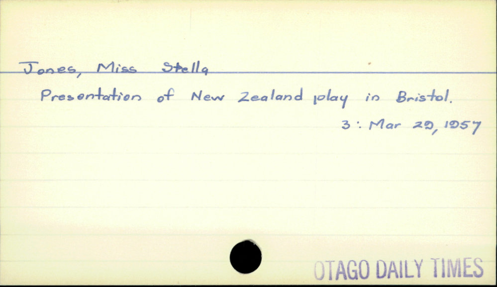 Dunedin Public Libraries (25th Jul 2020). Jones, Miss Stella. In Website Dunedin Public Libraries. Retrieved 27th Mar 2026 07:11, from https://dunedin.recollect.co.nz/nodes/view/158503